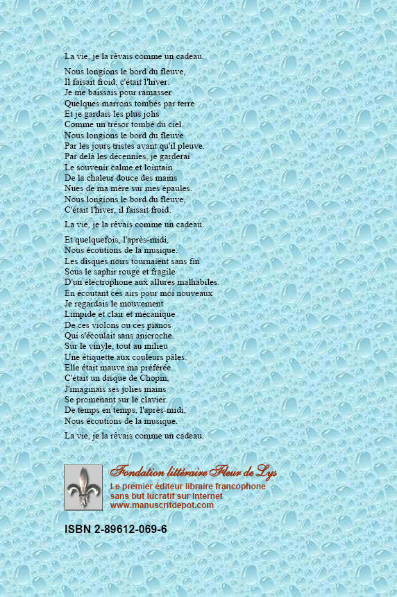 © 2005 Fondation littéraire Fleur de Lys inc., organisme sans but lucratif. |