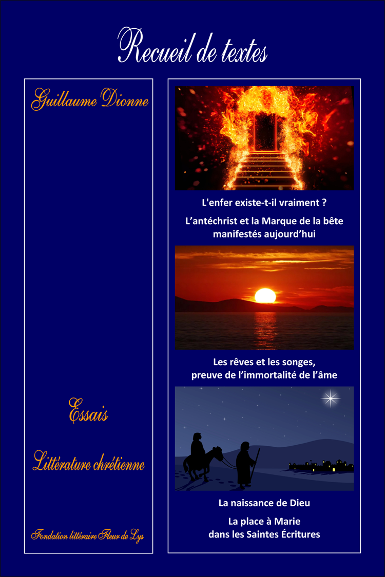 Recueil de textes L'enfer existe-t-il vraiment ? L’antéchrist et la Marque de la bête manifestés aujourd’hui Les rêves et les songes, preuve de l’immortalité de l’âme La naissance de Dieu La place à Marie dans les Saintes Écritures Exemplaire numérique gratuit (PDF)