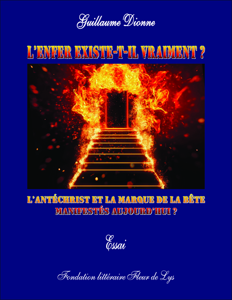 L’enfer existe-t-il vraiment ? L’antéchrist et la Marque de la bête manifestés aujourd’hui Essai, Guillaume Dionne, Fondation littéraire Fleur de Lys, Lévis, Québec, 2021, 19 pages. ISBN 978-2-89612-605-7