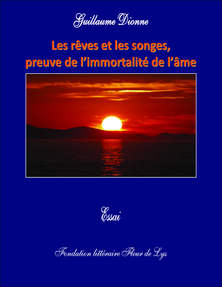 Les rêves et les songes, preuve de l’immortalité de l’âme Essai, Guillaume Dionne, Fondation littéraire Fleur de Lys, Lévis, Québec, 2021, 19 pages. ISBN 978-2-89612-608-8 Exemplaire numérique gratuit (PDF)