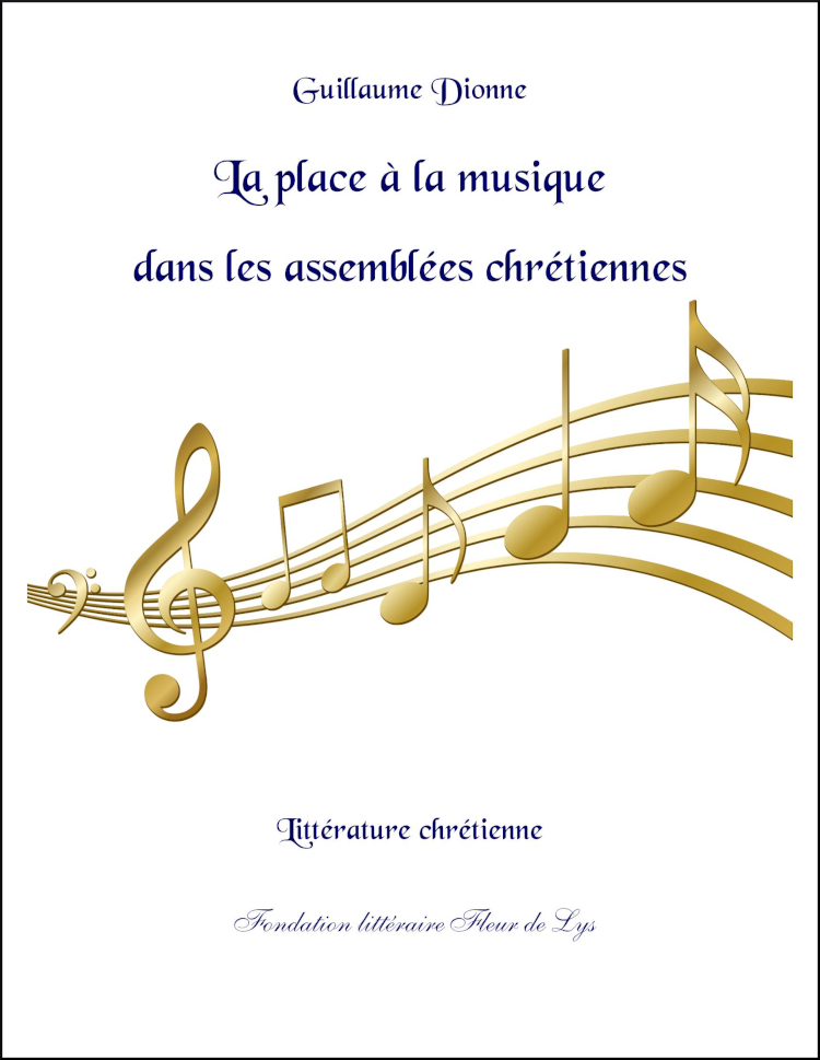 Guillaume Dionne La place à la musique dans les assemblées chrétiennes Littérature chrétienne Fondation littéraire Fleur de Lys, Lévis, Québec, 2025, 9 pages. ISBN 978-2-89612-652-1 © 2025 Copyright Guillaume Dionne Exemplaire numérique GRATUIT (pdf)