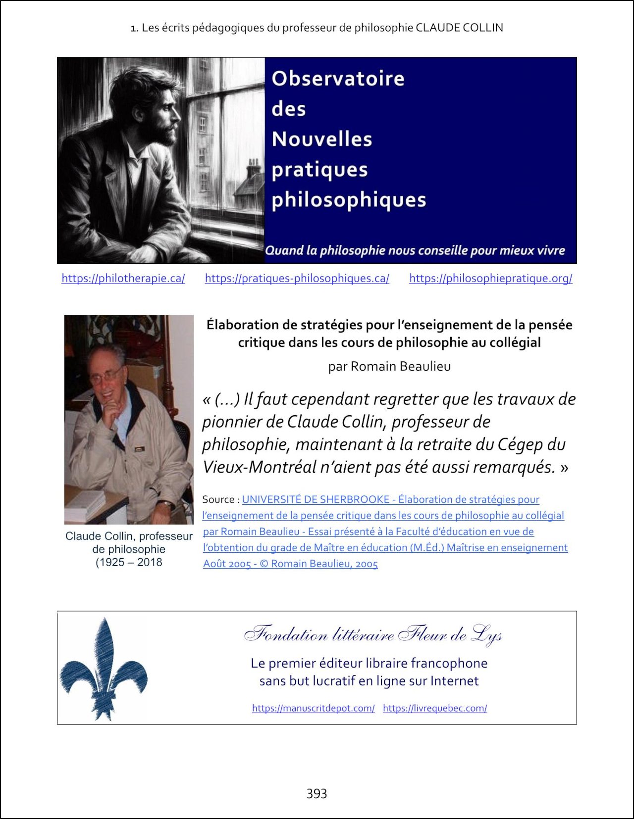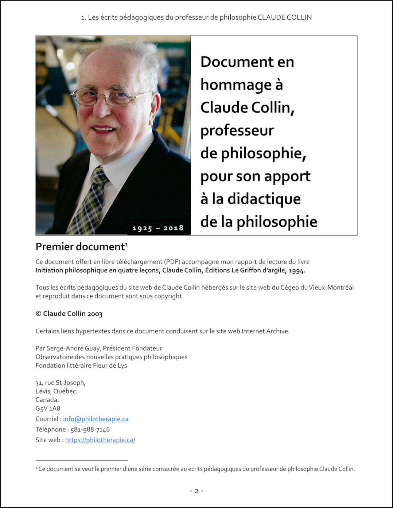 CLAUDE COLLIN(1925 – 2018) professeur de philosophiepour son apport à la didactique de l'enseignement de la philosophie au collégial(Collège d'enseignement général et professionnel - Cégep - Québec) LIVRE NUMÉRIQUE GRATUIT - EBOOK GRATUIT - PDF GRATUIT
