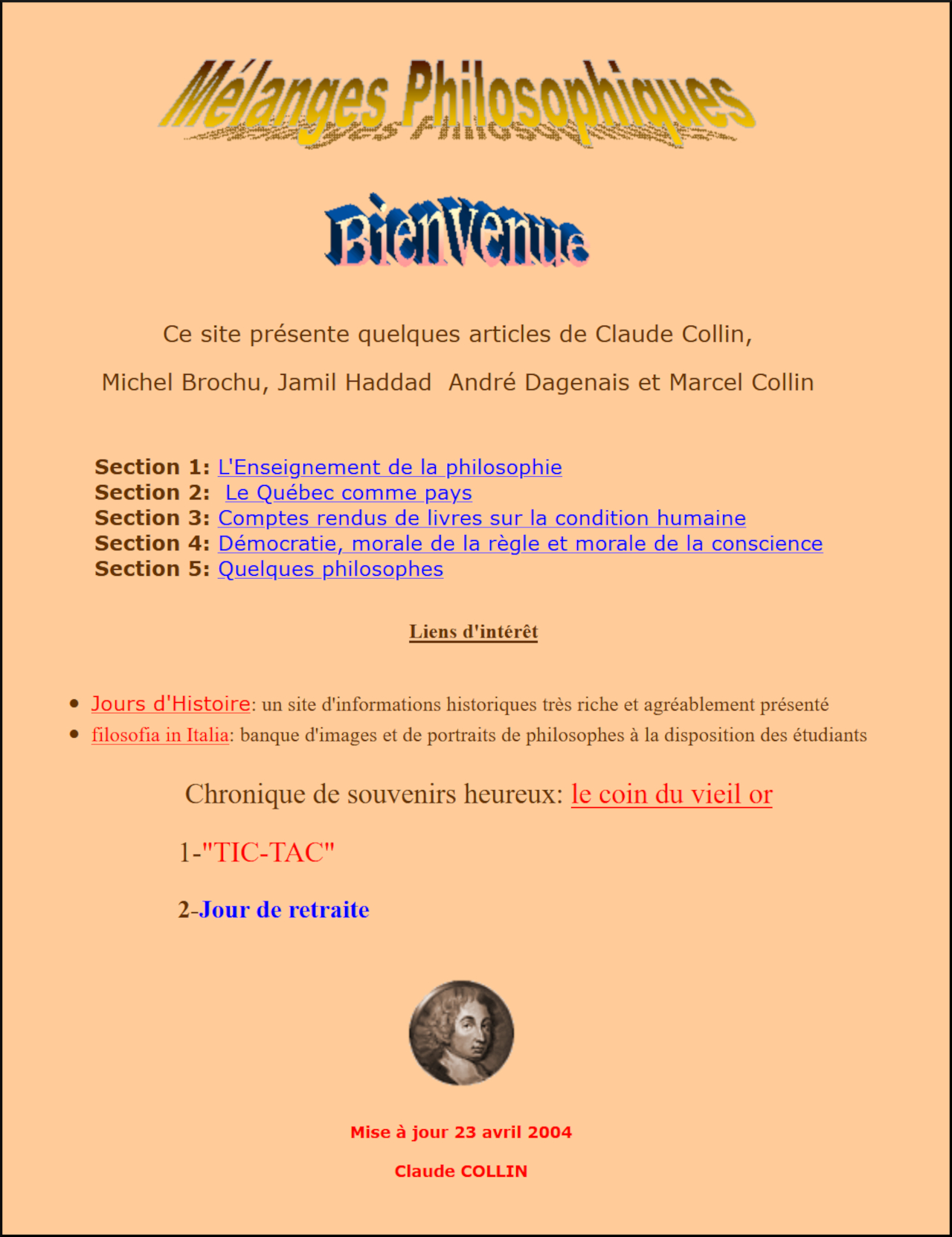 Les écrits pédagogiquesdu professeur de philosophieClaude Collin(1925 – 2018) offert sur son site webMélanges Philosophiques